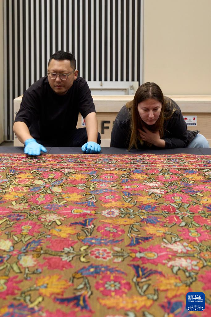 2025年6月12日,工作人员在香港故宫文化博物馆布置“天方奇毯——伊斯兰与世界文明的交织”展览。新华社发(香港故宫文化博物馆供图)