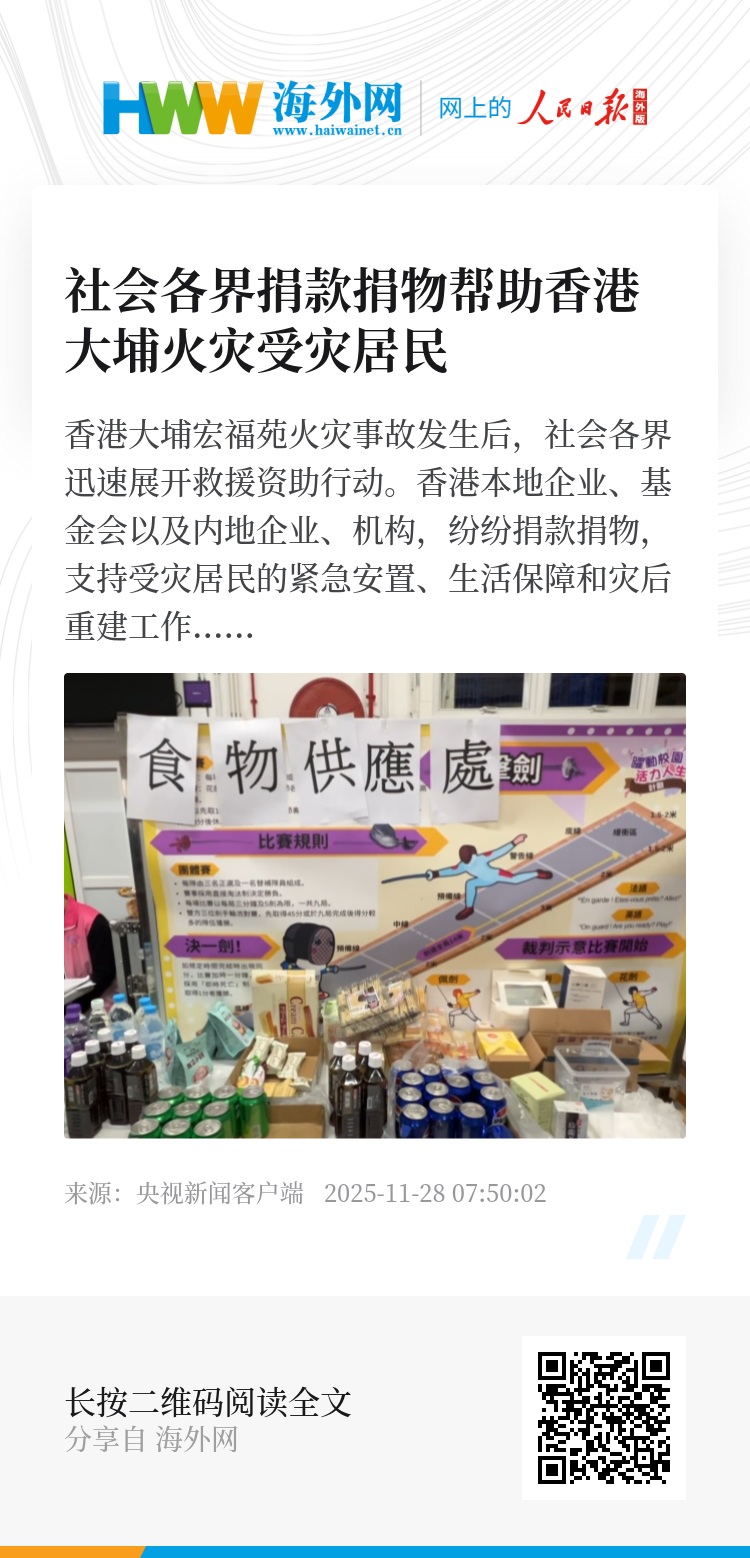 香港大埔宏福苑火灾事故发生后,社会各界迅速展开救援资助行动。香港本地企业、基金会以及内地企业、机构,纷纷捐款捐物,支持受灾居民的紧急安置、生活保障和灾后重建工作。