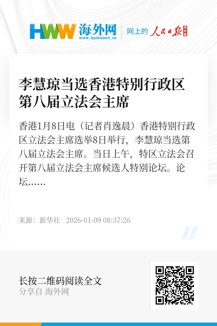 新华社香港1月8日电(记者肖逸晨)香港特别行政区立法会主席选举8日举行,李慧琼当选第八届立法会主席。