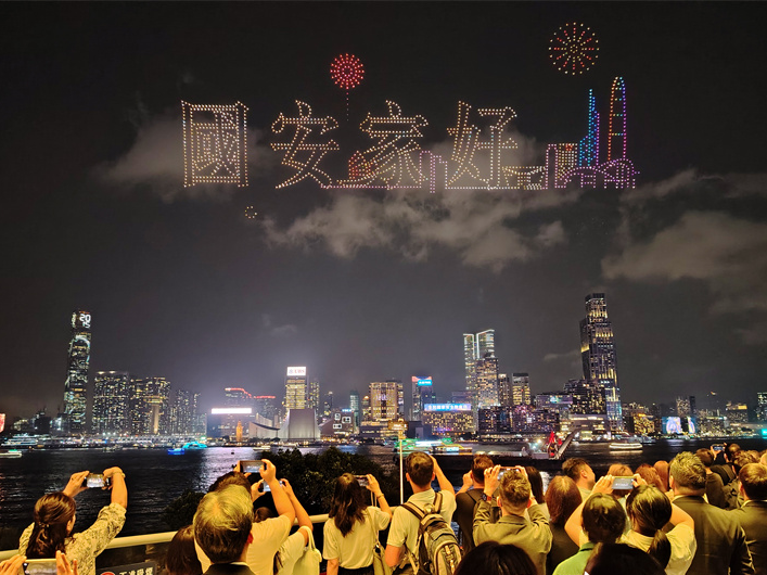维港两岸不少市民与旅客观看了表演,无人机每一次变阵皆引来阵阵惊叹。众人举机拍摄,点点手机亮光与夜空光影遥相呼应,让国家安全的理念随光影传遍全城。光影落幕,情怀不息。从历史传承到太空探索,十幕画卷不仅是一场视觉盛宴,更是一堂全民共上的国家安全教育课,为“一国两制”行稳致远写下生动注脚。